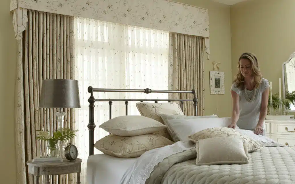 For many people, the bedroom requires several different considerations to select the appropriate window treatments. This usually means using dual treatments or layering two complementary solutions. Let’s take a look at some of the most common considerations for this situation.
