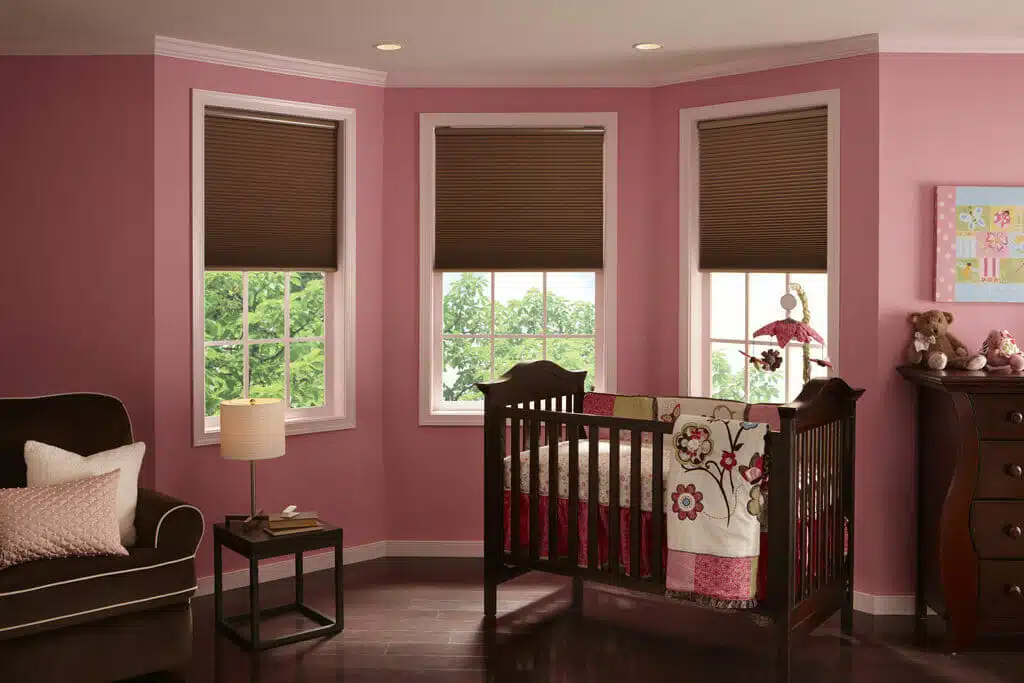 Room darkening shades are designed to reduce the amount of light entering a room. These shades are not designed for complete darkness, but they will eliminate almost all light. In contrast, blackout shades create complete darkness by minimizing gaps that create the ‘halo effect’ of light coming through your windows. This is achieved by combining treatments creating a layered effect that include blackout curtains with blinds, roller shades, or cellular shades.