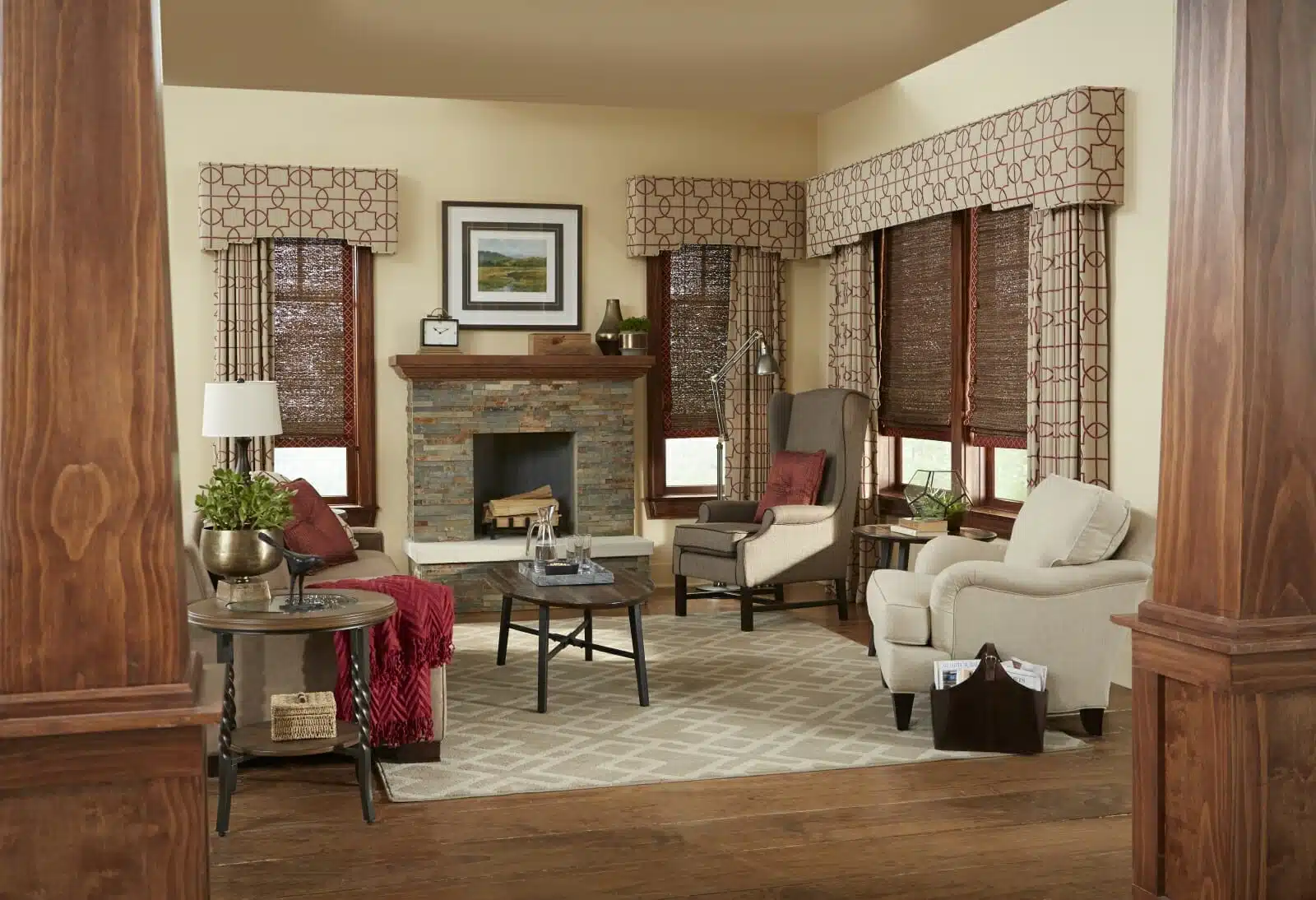 I love using Roman shades in my client's homes. They are functional, but there is no better way to get a professionally designed showcase home look. They bring style and softness to the room while pulling everything together; they are like adding a touch of jewelry. There are many ways to achieve the look you want with Roman shades by using different fabric textures and colors. Using beautifully embroidered silk in the master bedroom, you can design a romantic getaway; canvas or cotton shades with contrasting banding look excellent in children's rooms and playrooms. You can even get them in a woven wood material that allows you to have a more organic or beach feel. The beauty of Roman shades is when they're entirely lifted out of your window; not only do you maintain your view, but they create the look of a designer valance. If you love that look and you want to keep it all of the time, even when the shade is down, use the hobbled Roman shade style, and it will look the same when it's down as when it's up. The only way to wow your friends even more is by adding drapery panels on each side to frame its beauty! I would highly suggest considering Roman shades for your next window purchase.