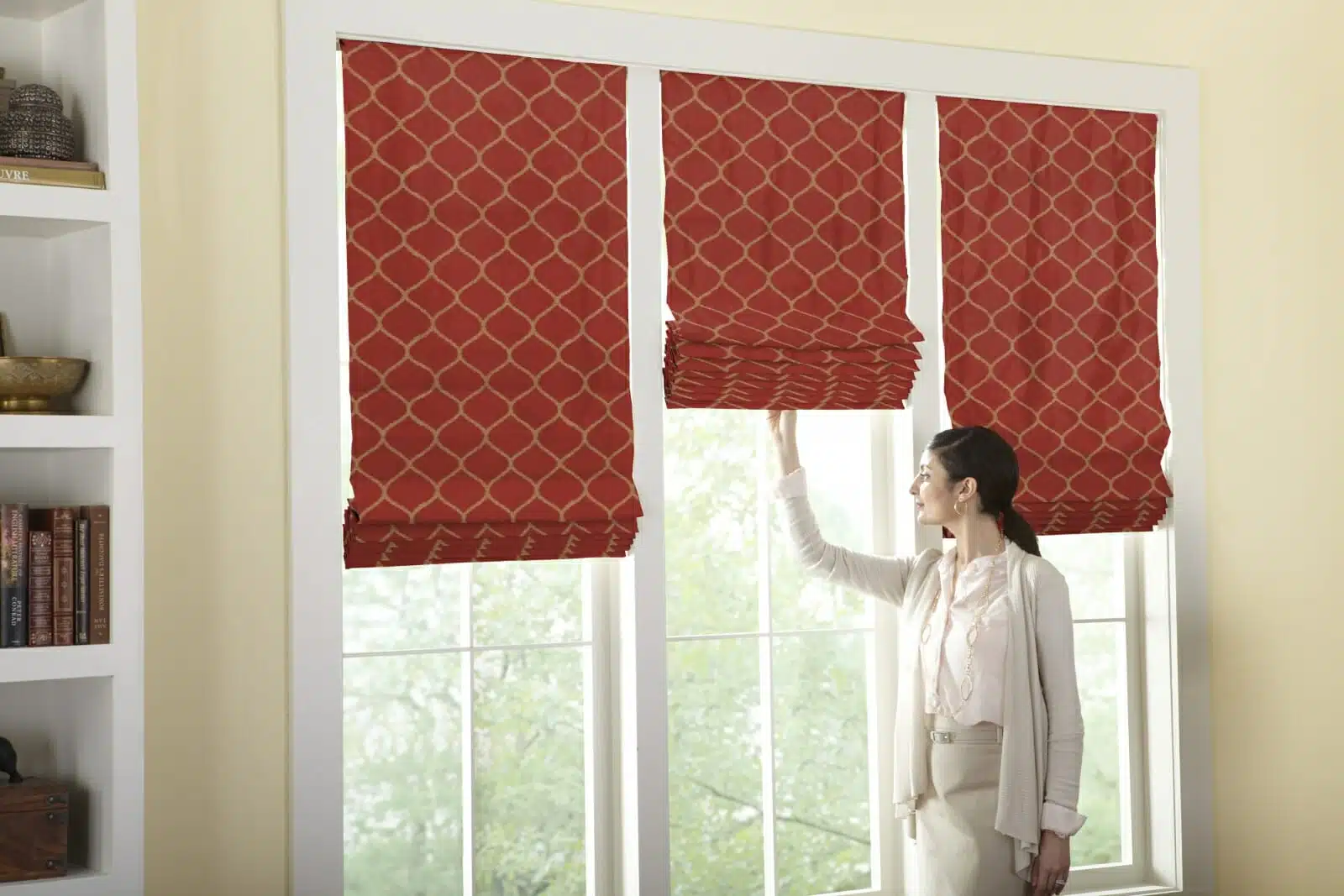 Roman shades are a beautiful window treatment option. The design of a Roman shade is typically a flat piece of fabric with accordion like folds that come together when the lift mechanism is operated.