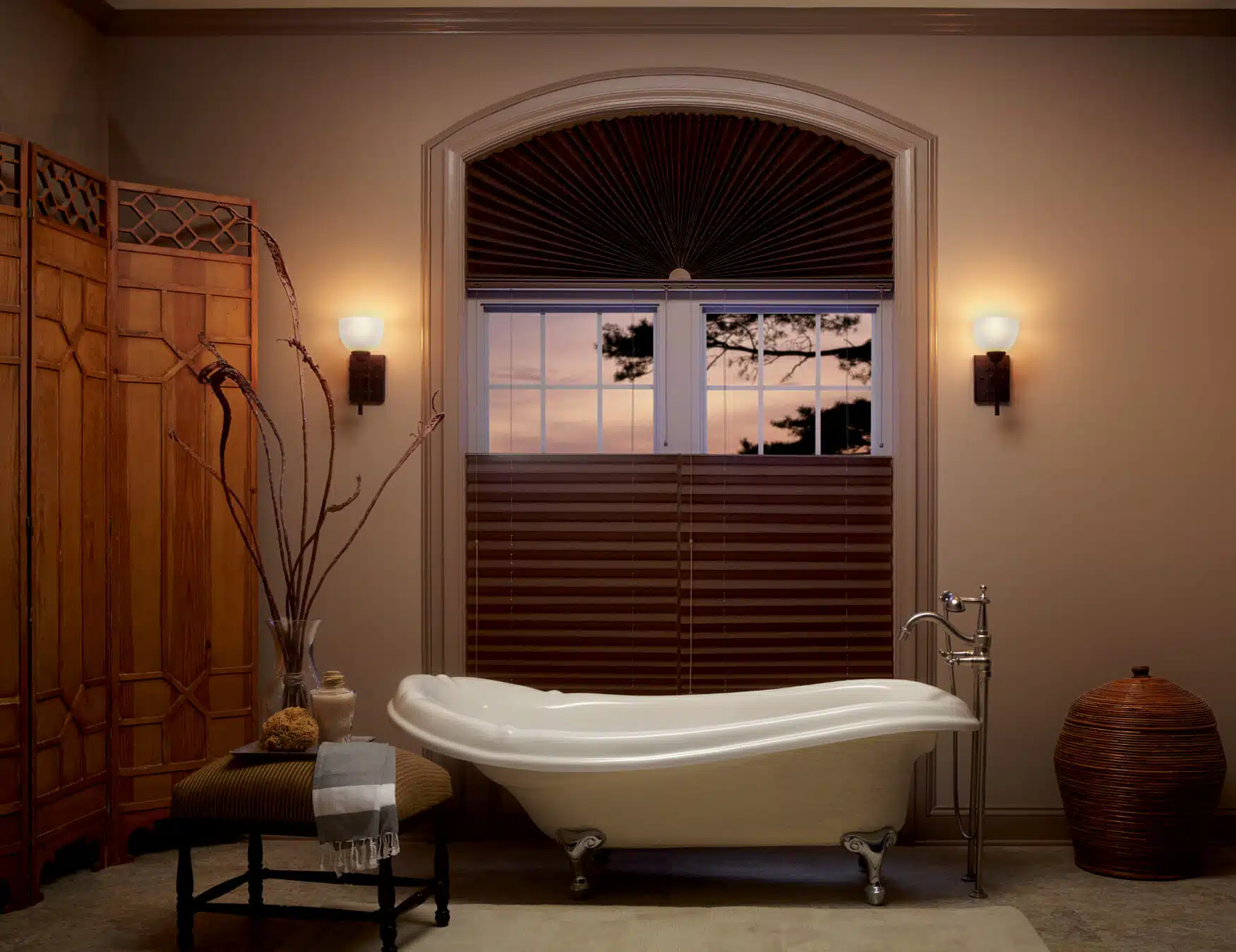 Like drapes, Roman shades provide excellent coverage, yet they can be raised up and out of the way when you want to enjoy the view. This also allows you to have control over the amount of light that is filtering through your windows. And if you’re planning to use top treatments or drapes over shades, you’ll find that Roman shades unique styling fits well with the treatments of your choice!