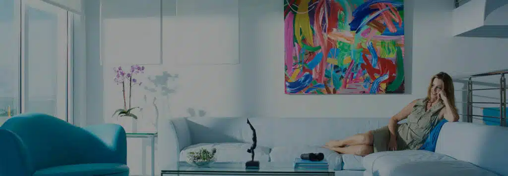 For a more relaxed feel motorize those natural woven wood shades and give your family room a beachy vibe while filtering in the natural light while controlling them from your smartphone.
